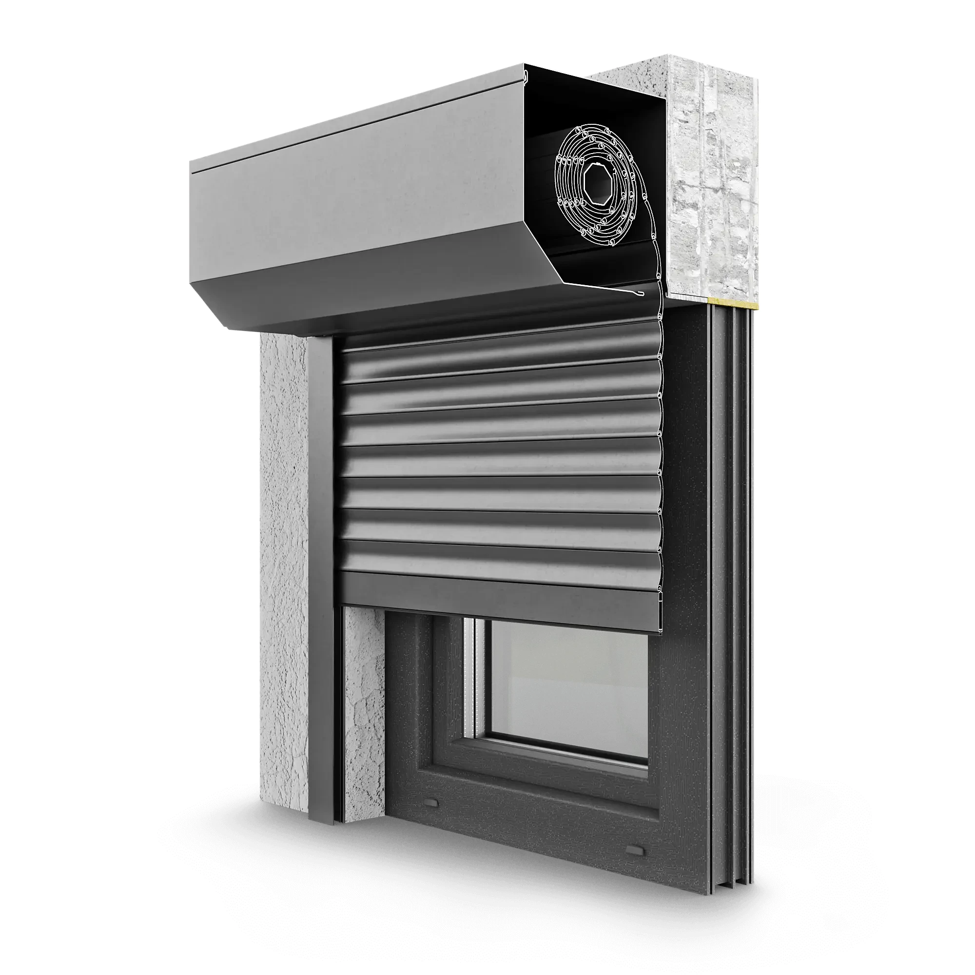 System z charakterystyczną skrzynką ściętą pod kątem 45 stopni od strony zewnętrznej. Idealne rozwiązanie dla osób preferujących elementy wykończeniowe o ostrych, geometrycznych kształtach. Roleta przeznaczona do montażu zarówno bezpośrednio na elewacji obiektu, jak i we wnęce na ościeżnicy okiennej dzięki uniwersalnemu kształtowi skrzynki.